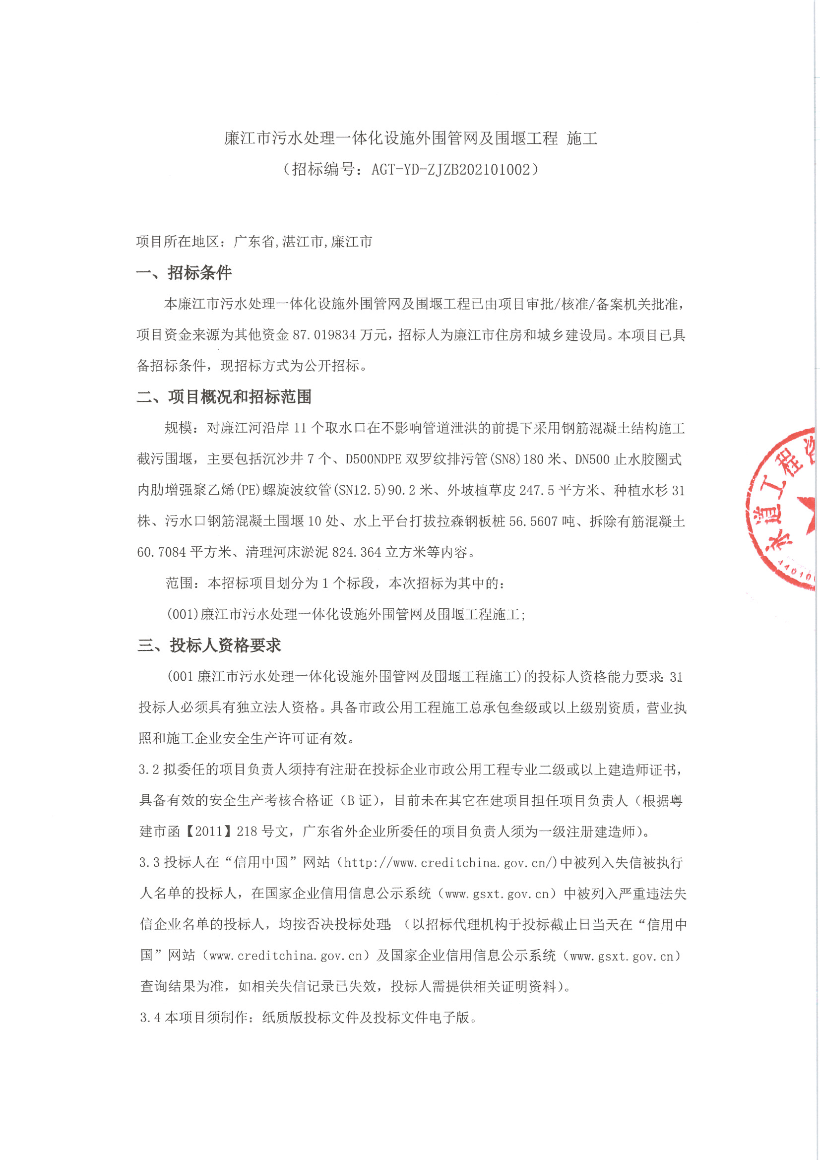 廉江市污水處理一體化設(shè)施外網(wǎng)管網(wǎng)及圍堰工程施工